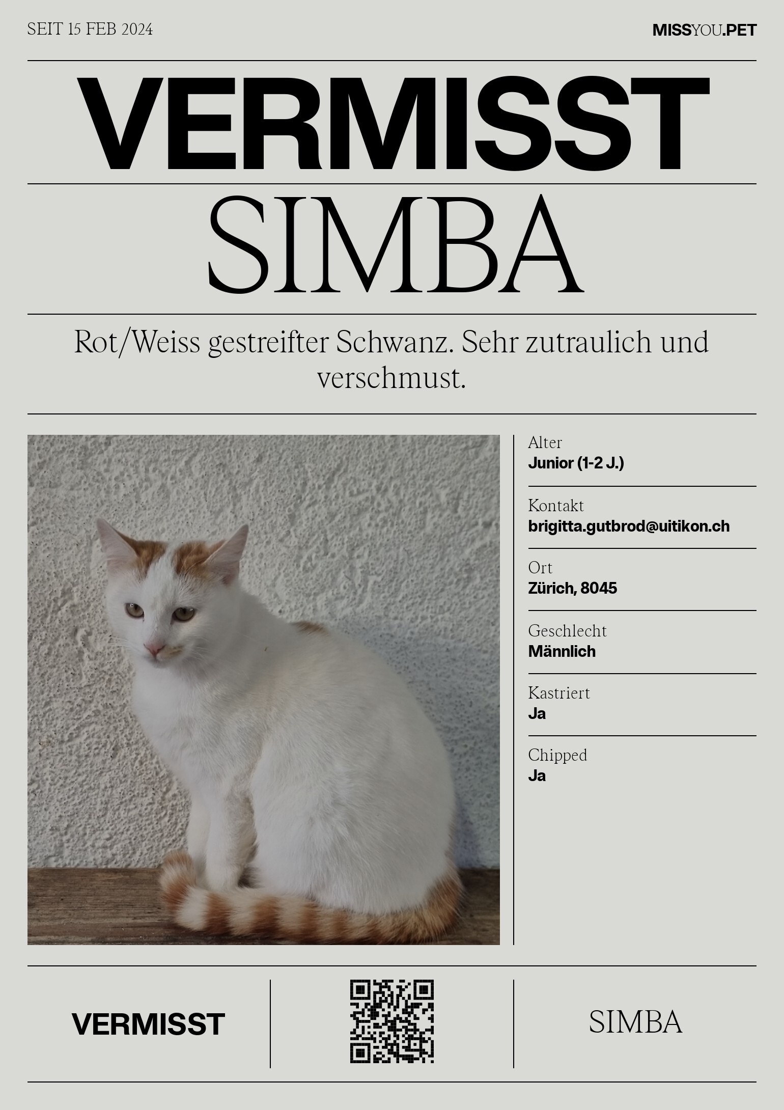 Rot/Weiss gestreifter Schwanz. Sehr zutraulich und verschmust.